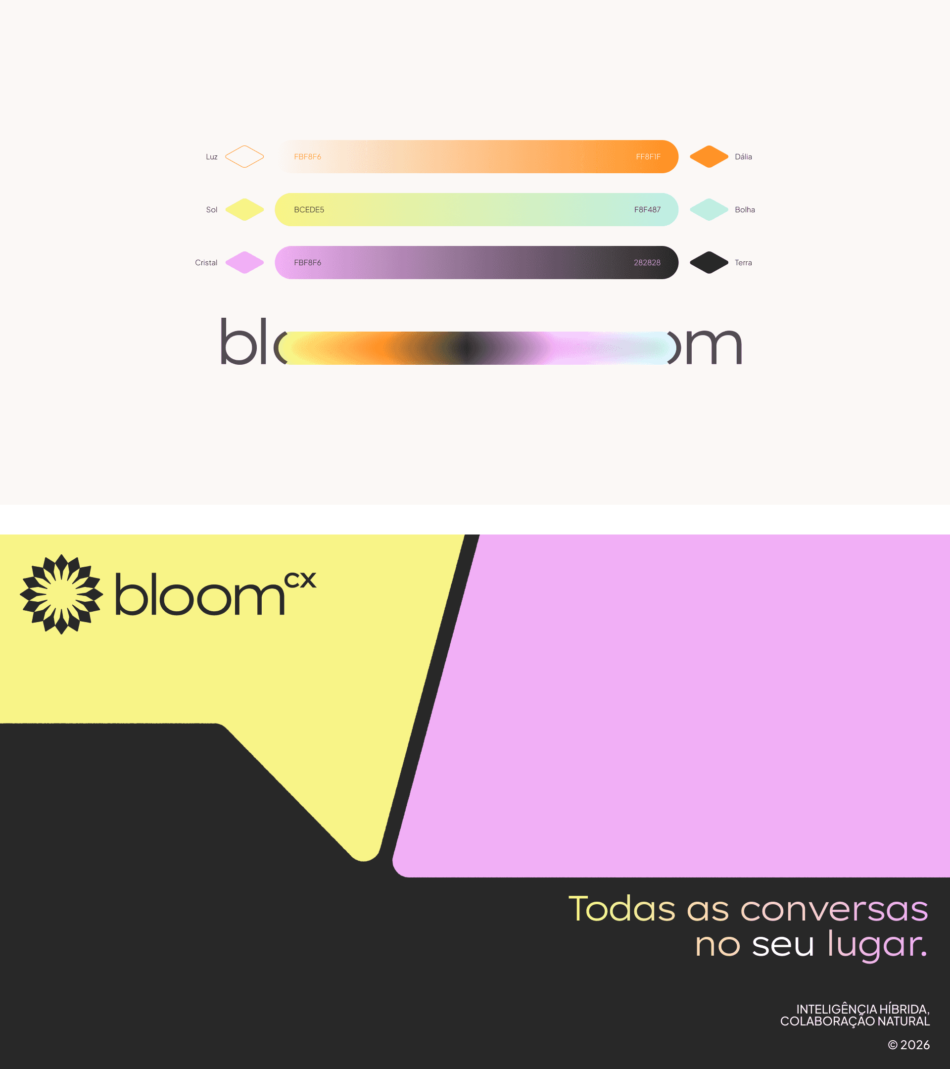 Pensando em sua evolução no mercado e na necessidade de se posicionar com clareza diante de decisores estratégicos, a BloomCX buscava ir além do território genérico de plataformas de Customer Experience que utilizam IA. Nosso objetivo era claro: redefinir o papel da marca, organizando seu discurso e sua proposta de valor para médias e grandes empresas com operações de atendimento complexas.